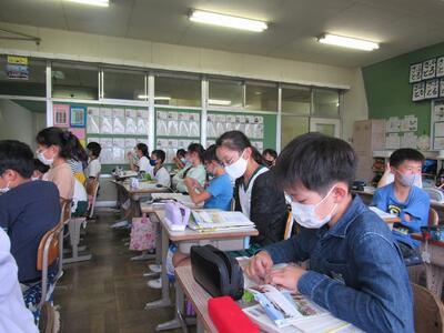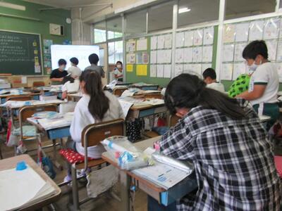 5年生は、国語で作成した「報告文」を学校運営協議会の皆さんにご覧いただきたいと持ってきています。