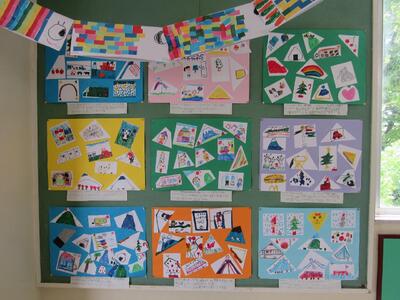 ◆こちらの1年生は、算数で三角形を組み合わせているよ。