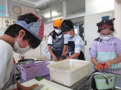 今日の給食に間に合わせようと、丁寧に素早く作業をしているよ。