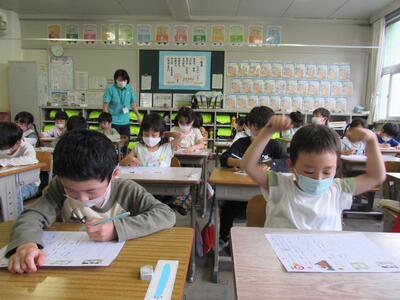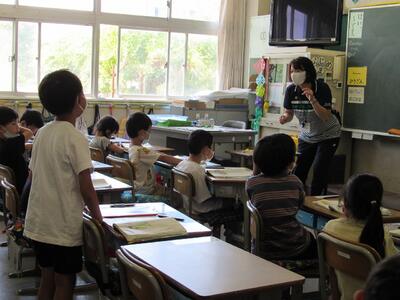 先生も一緒になって、5年生の仲間入り。