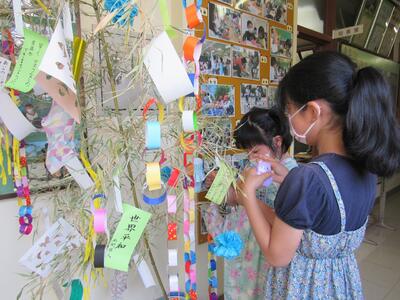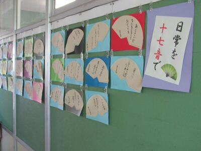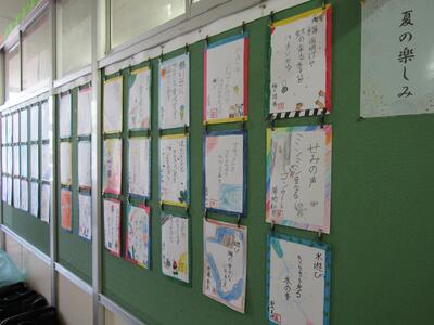 4年生のろう下には、国語で学んだ「夏の楽しみ」の俳句かな。