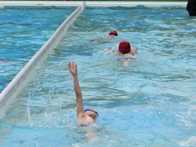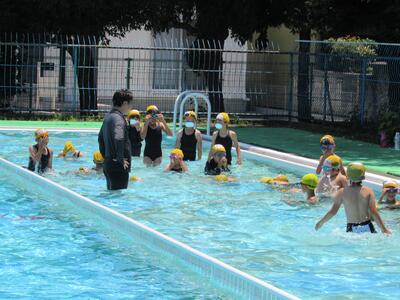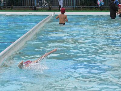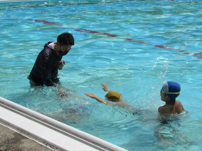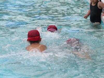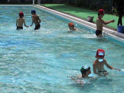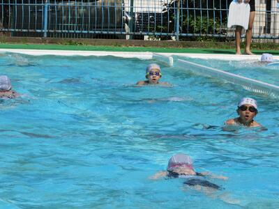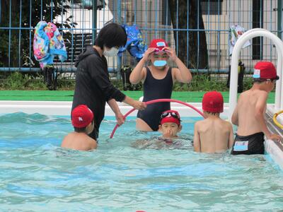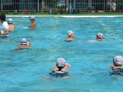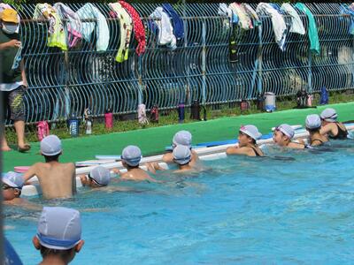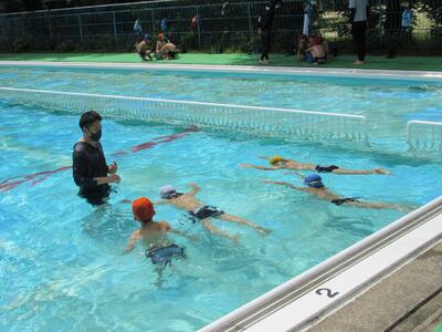 2チームに分かれて、泳力を伸ばそうと張り切っているね。