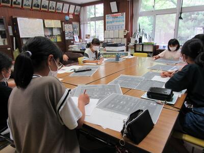 写真資料と地図を比べながら、市のどの辺りの様子なのか考えさせていきます。
