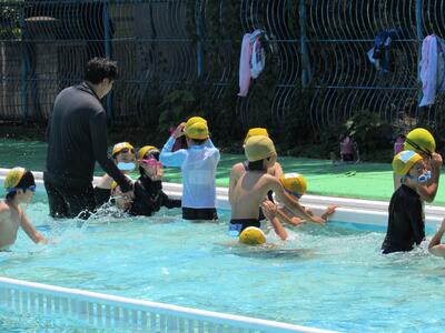 ◆「たんぽぽ・ひまわり学級」は、水泳学習を楽しそうに進めているよ。