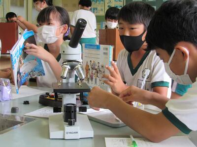 「どのようなものが観察できたの?」 「ミジンコやミドリムシです。」