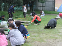 小雨が降ったりやんだりの天候でしたが、多くの保護者や児童が参加し校庭の除草やトイレ