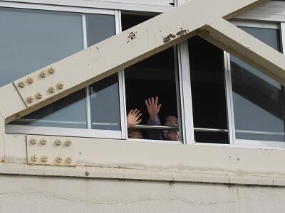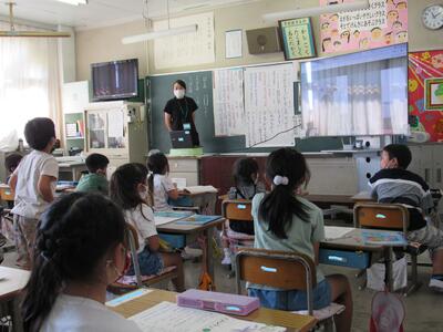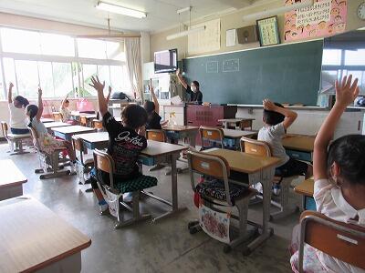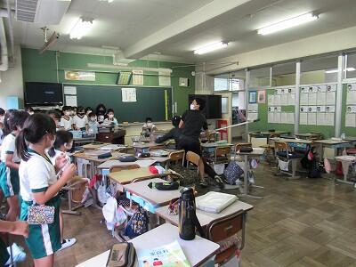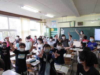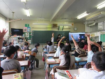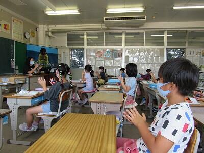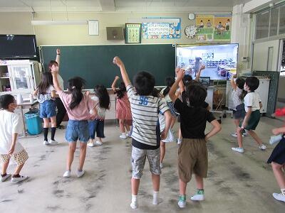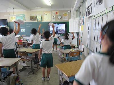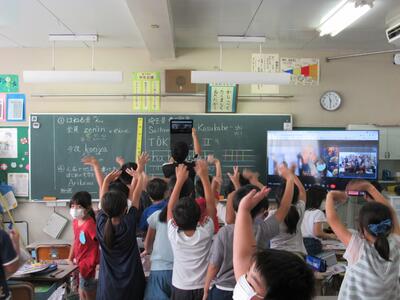 最後は、大画面の中の5年生と一緒にあいさつをして終了!!