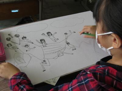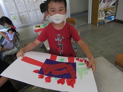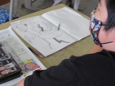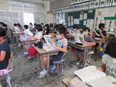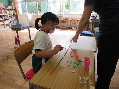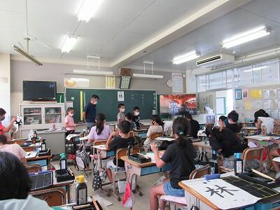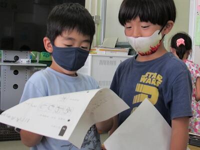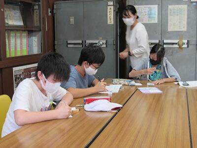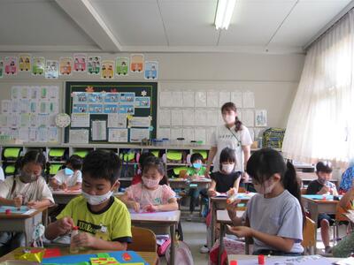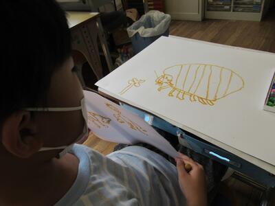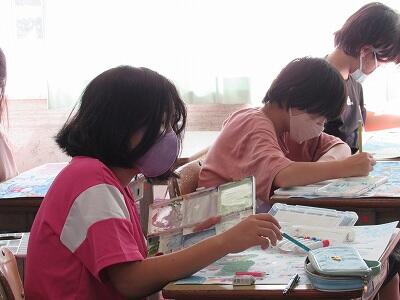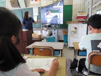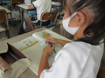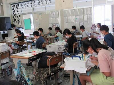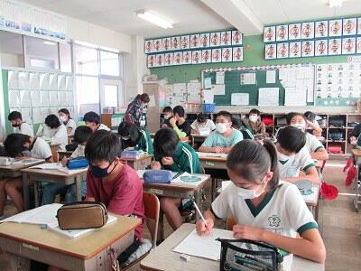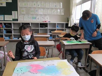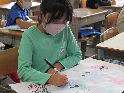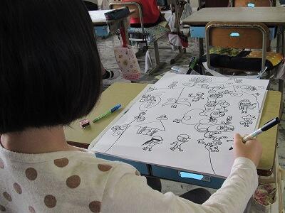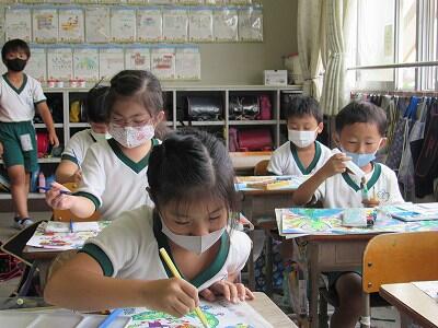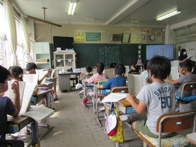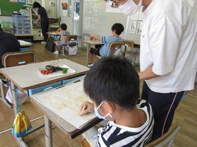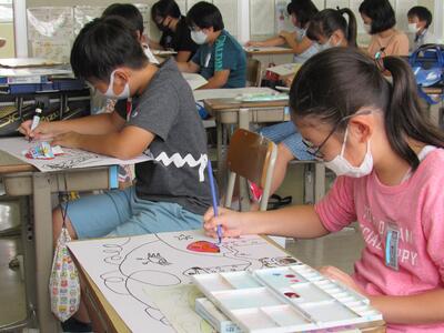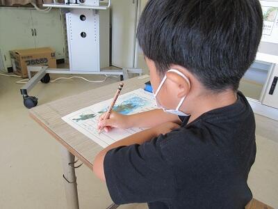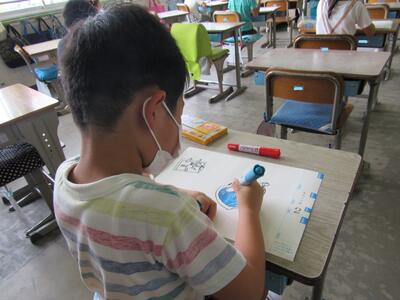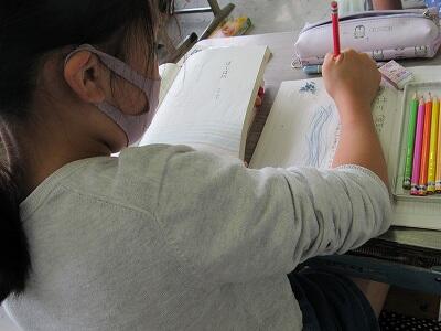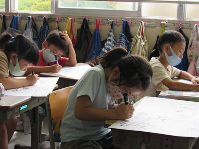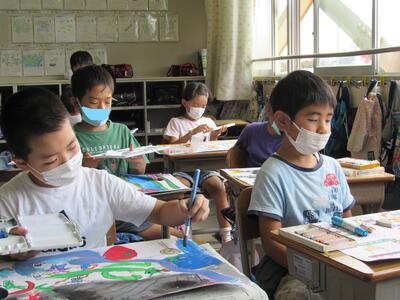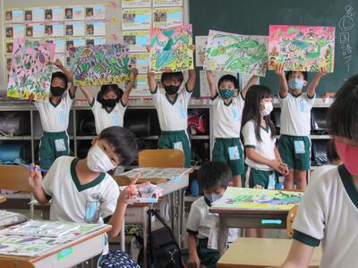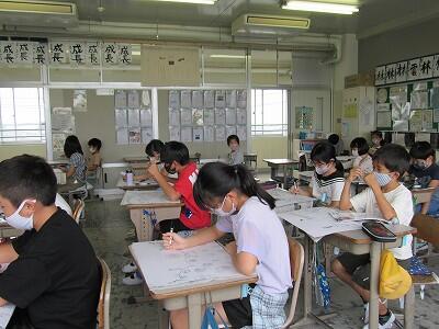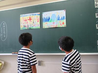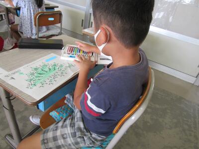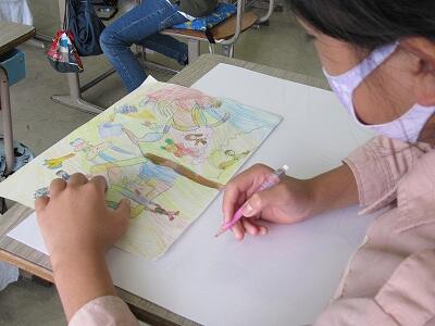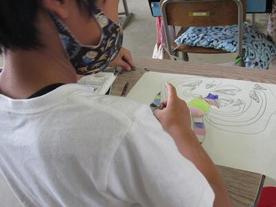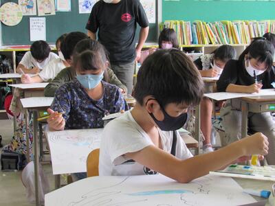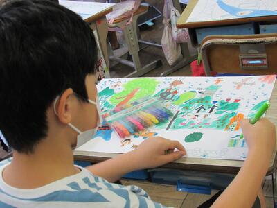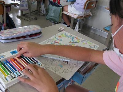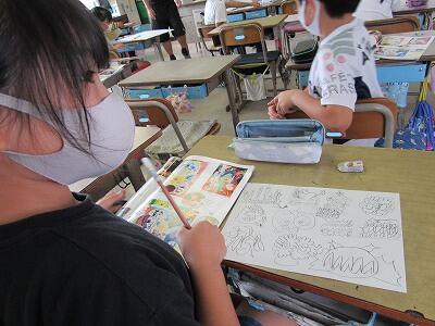◆2年生は、夏の思い出を絵に描いて振り返り。