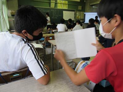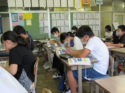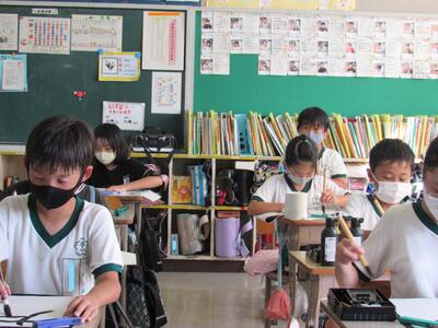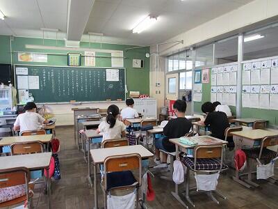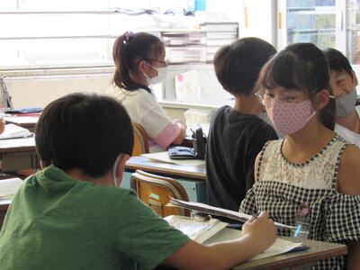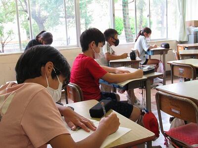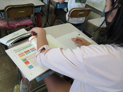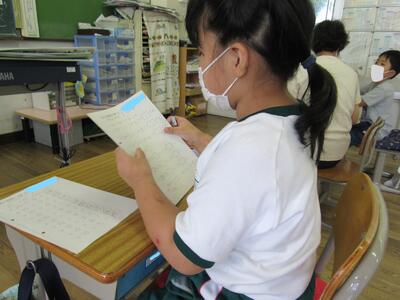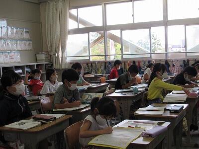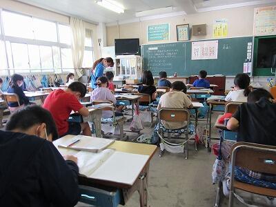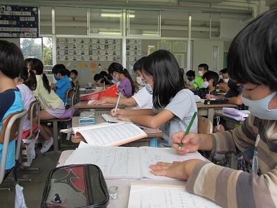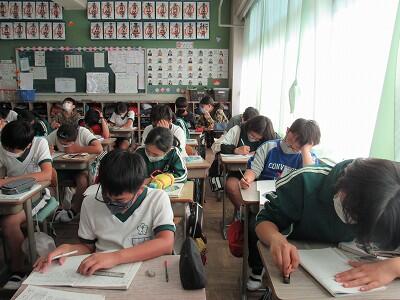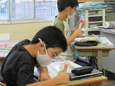 こちらの6年生は、1学期の目標を振り返り、2学期の目標をじっくりと考え中。
