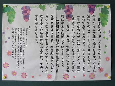 第2学期も、保護者、地域の皆さんのさらなるご理解、ご協力をお願いします。