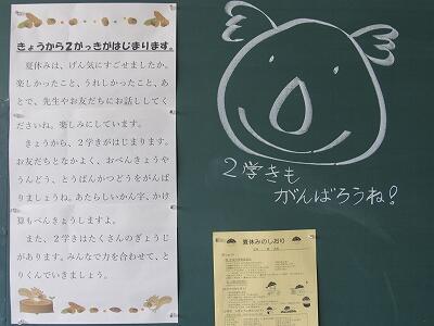 児童のみなさん、8月30日・31日には、安全に気をつけて登校してきてね。