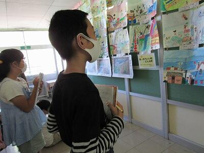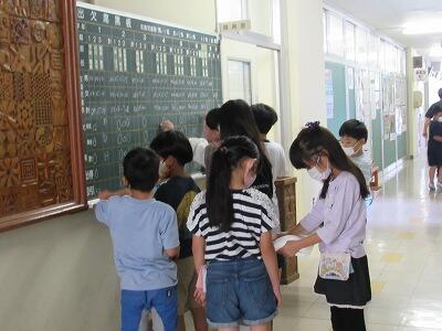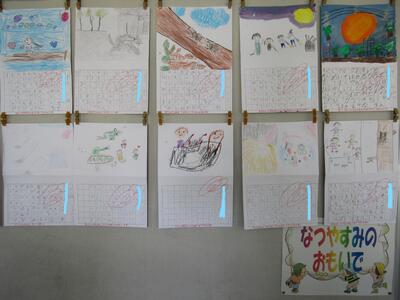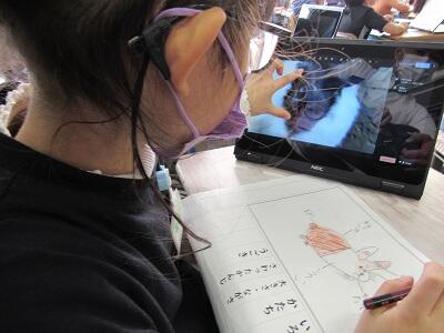 となりは、先生のPCで動画を視聴中!! ろう下で、夏休みの絵日記を発見!