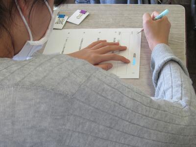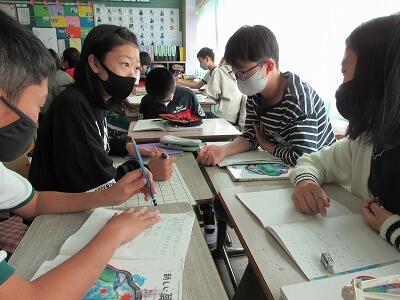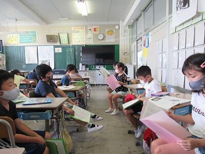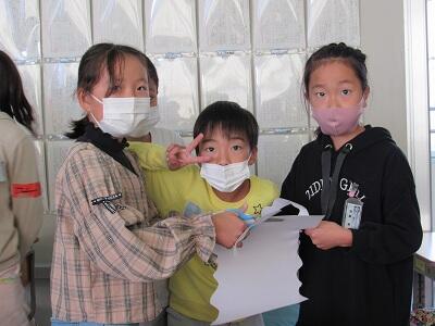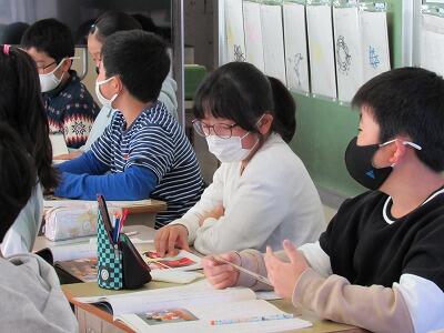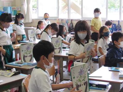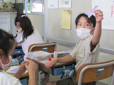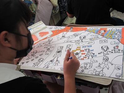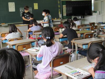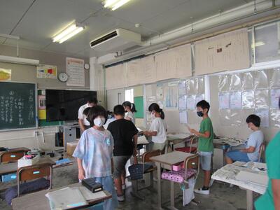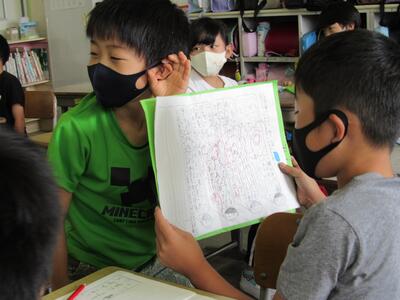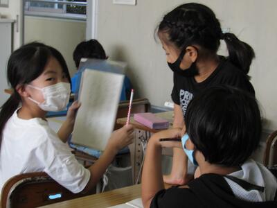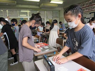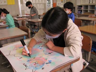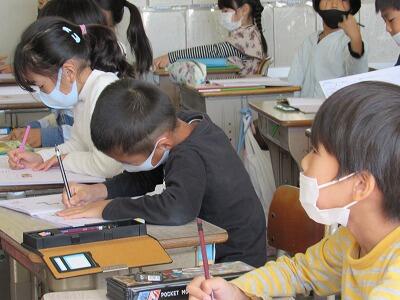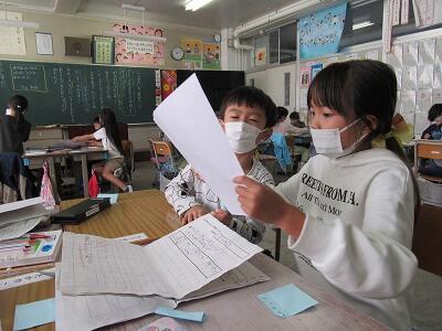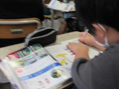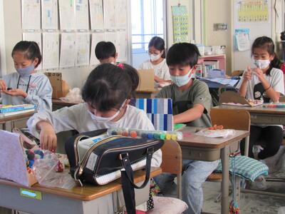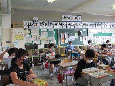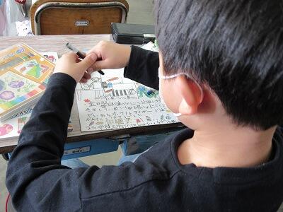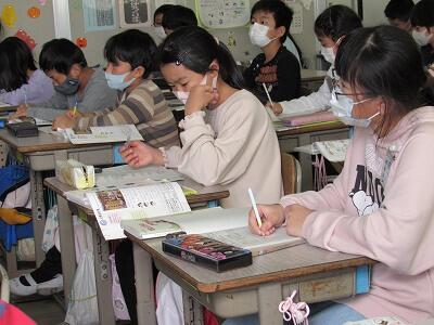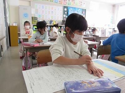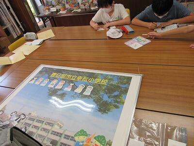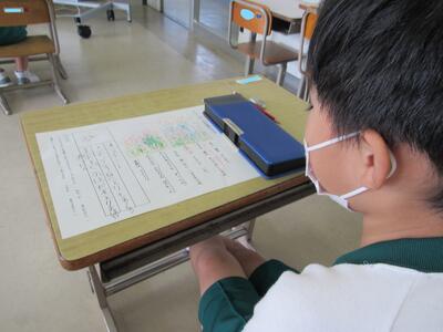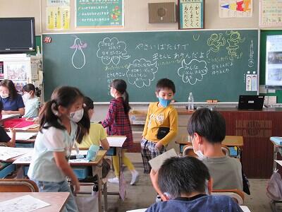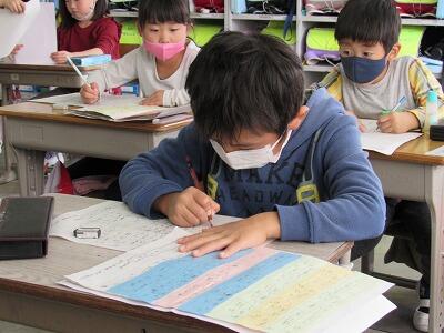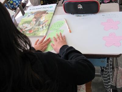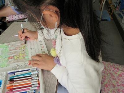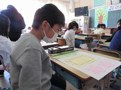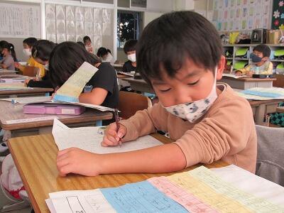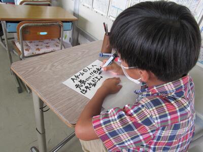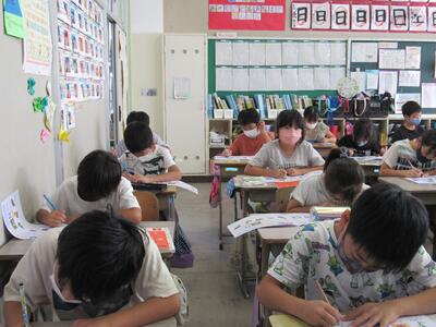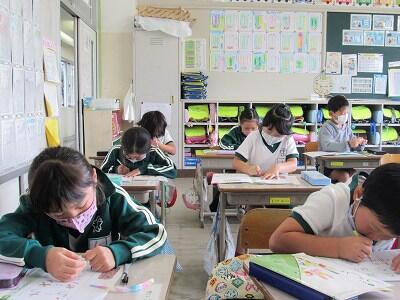 ◆4年生は、分散登校で会えない友達へメッセージを書いているよ。