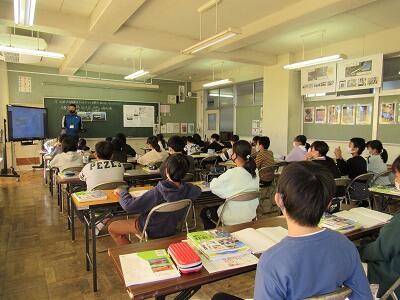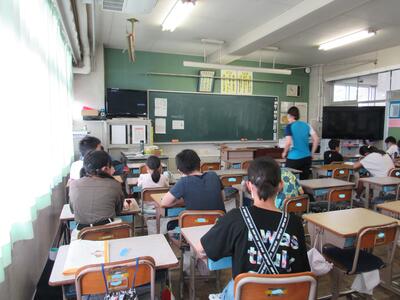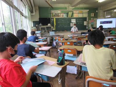 こちらの教室では、通学路での安全な登下校について考えているよ。