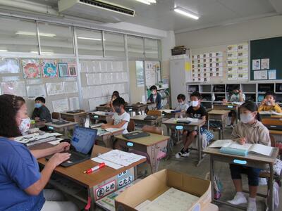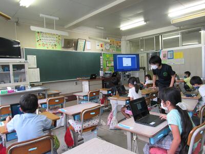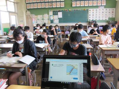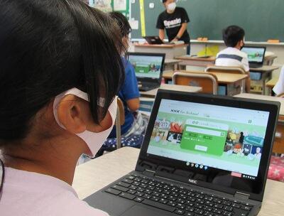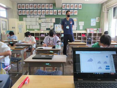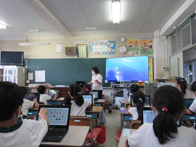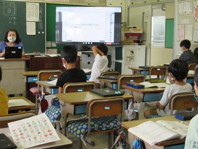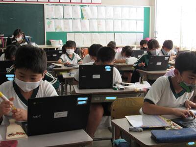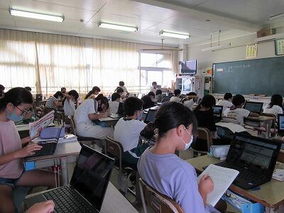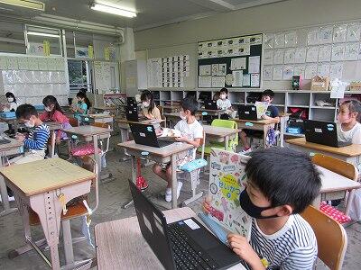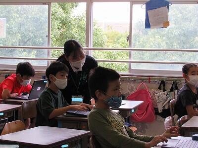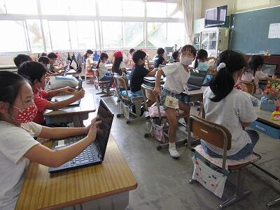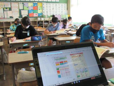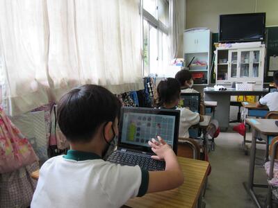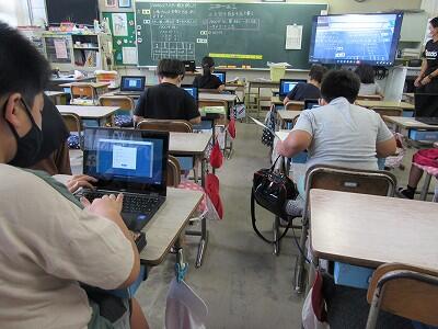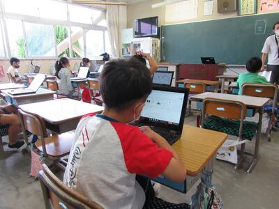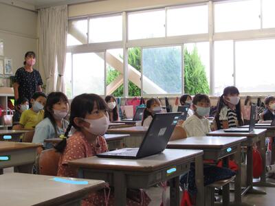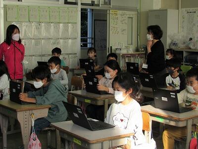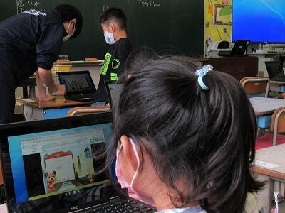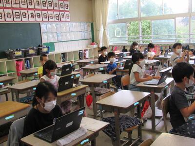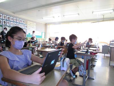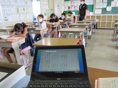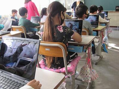 また、来週は、児童が自宅にパソコンを持ち帰り、自宅と学校をオンラインでつなぐ試験を行います。