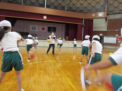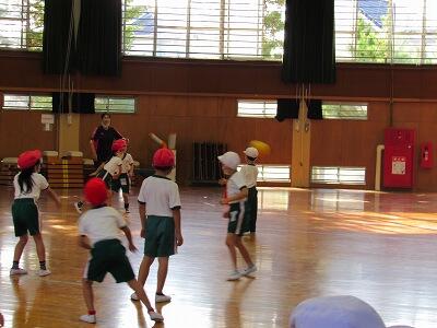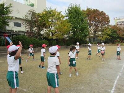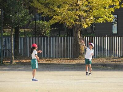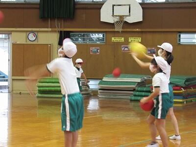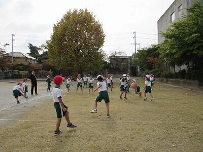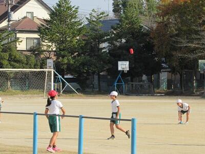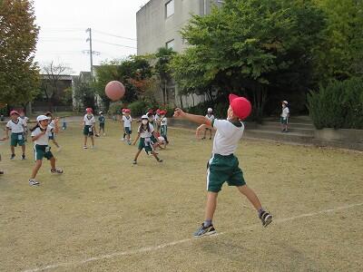 ボールを投げる、取る、さけるなど、楽しそうに運動しているなあ。