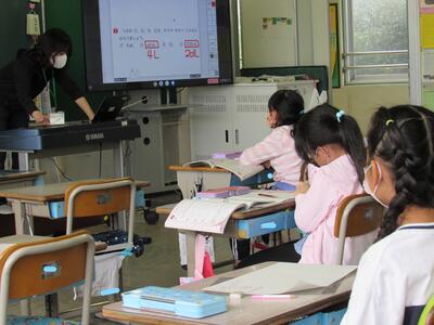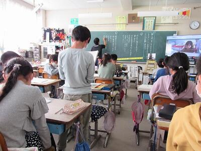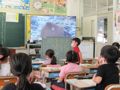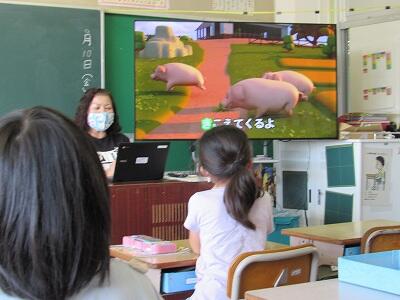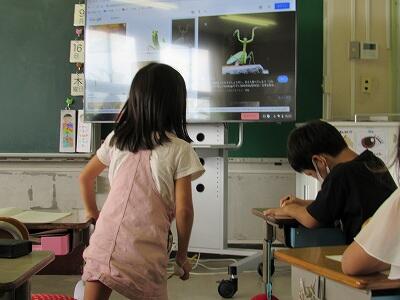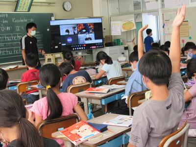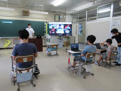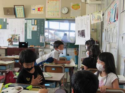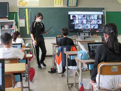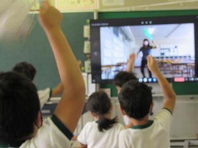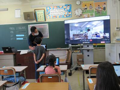 ◆1年生の教室では、先ほどの5年生の教室とミート機能でつながったよ。