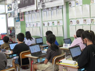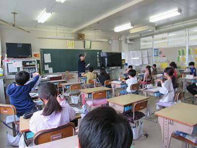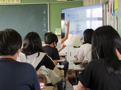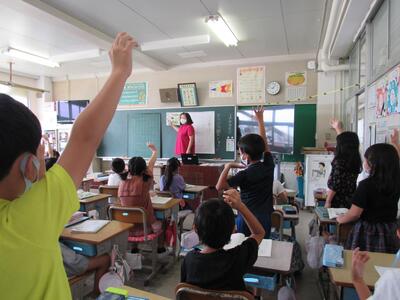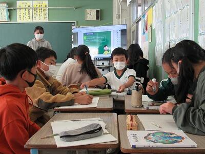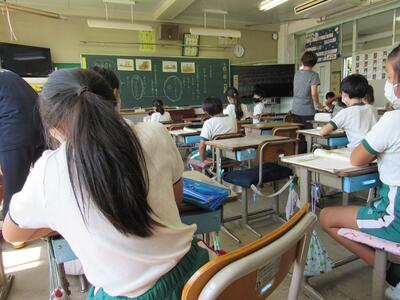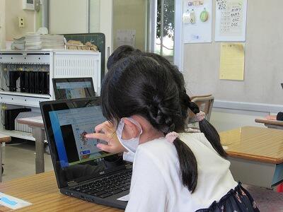 5年生の教室では、PCを使ってアンケートに回答する方法を学習中!!