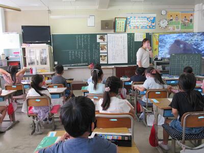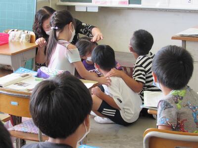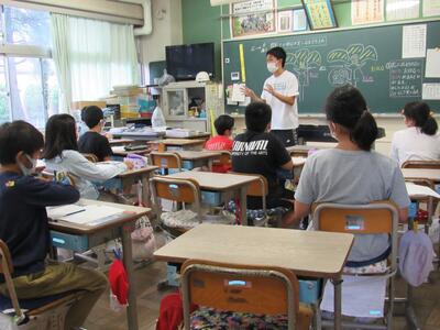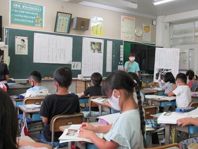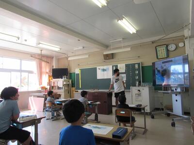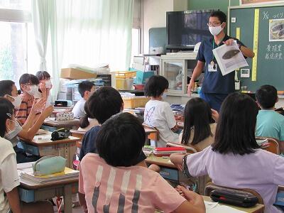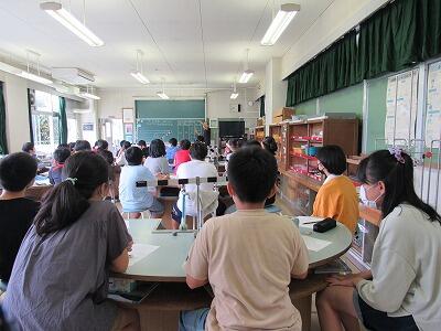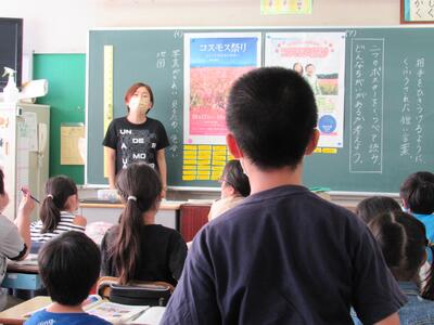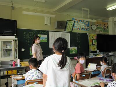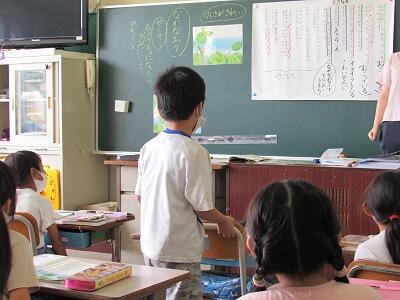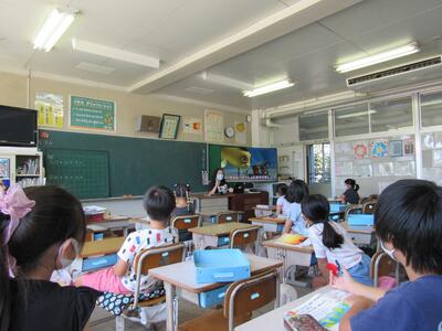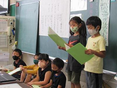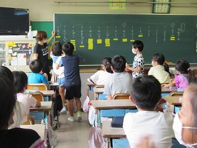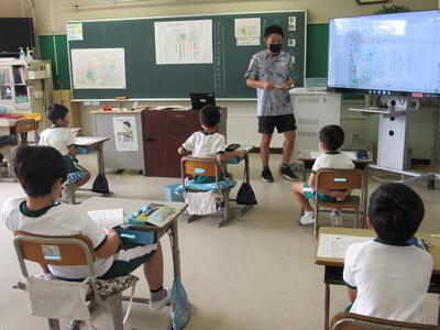 ◆1年生は、夏休みの思い出スピーチ!! 「魚をさわれましたか?」「さわることができませんでした。」
