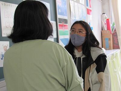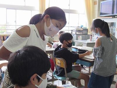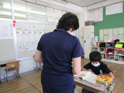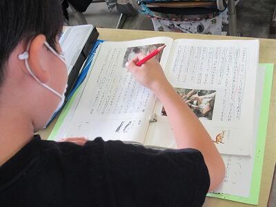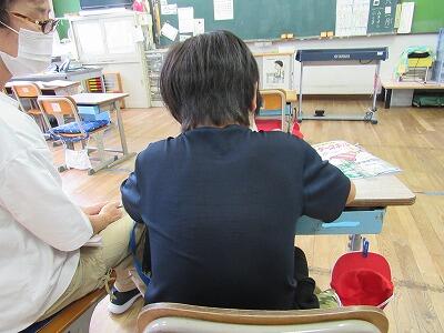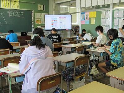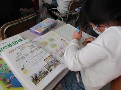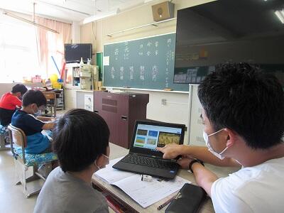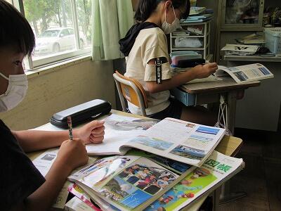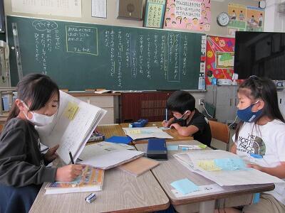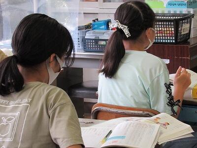こちらでは、次に学校へ登校する日までの課題のやり方を学んでいるよ。