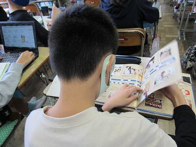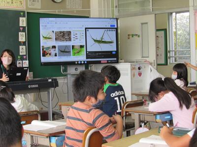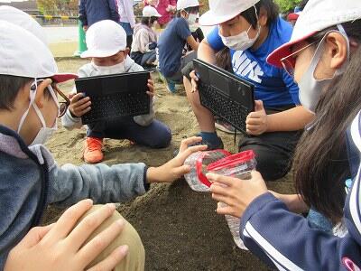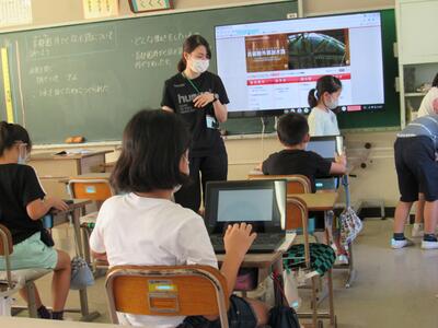 端末も活用しての検索を進める子どもたちを先生が支援していきます。