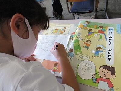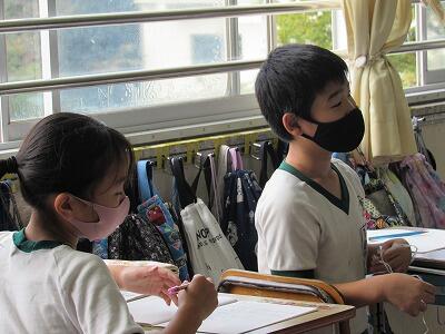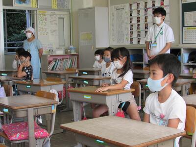 自分ができる手洗い、手の消毒、マスクなどと、自分たちができる教室の窓やドアを開ける換気などをしっかりとしようと約束しました。