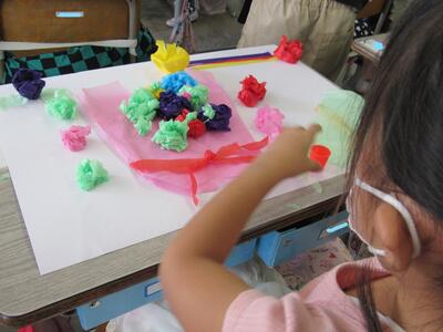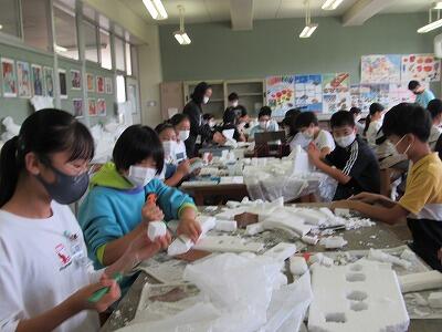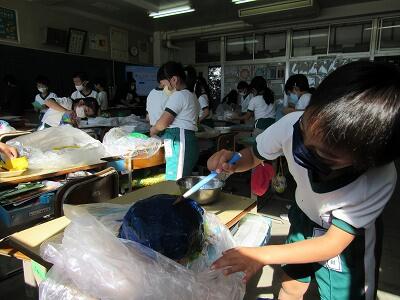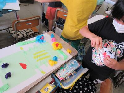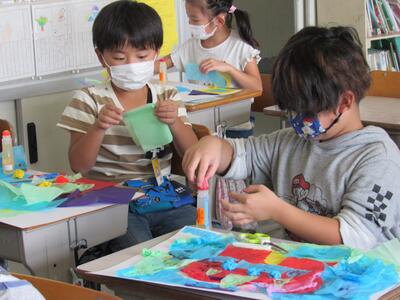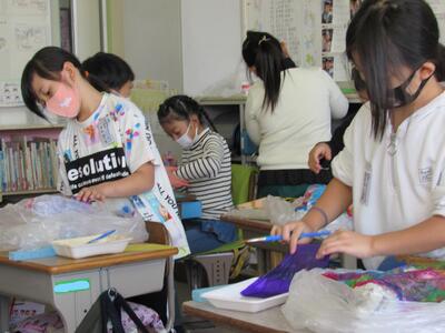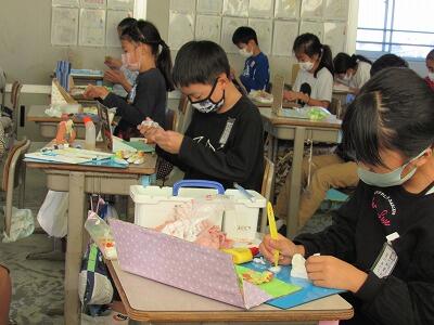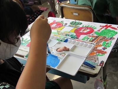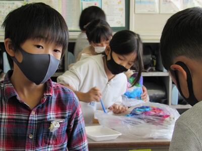 ◆図工が大好きな芸術家の6年生は、素敵な色を作り出しているよ。