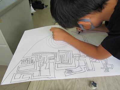 パズルのような模様をデザインしているよ。