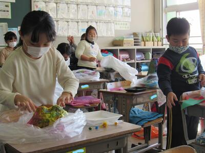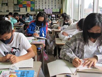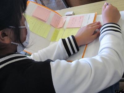 ◆5年生は、目標を考えたり、手紙やノートを配ったりだね。