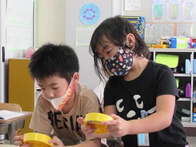 ◆理科室では、4年生の科学者たちが実験中!!