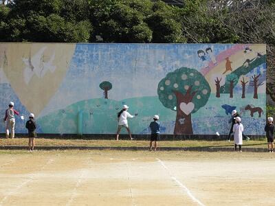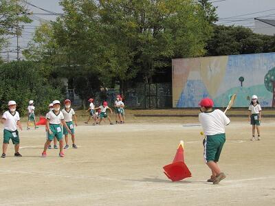 ◆ナイスバッティング!! 6年生がベースボール型ゲームの試合中だよ。
