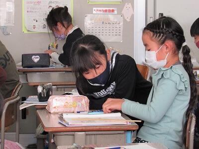 こちらでは、「校長先生、もう宿題なんです。」「さすが5年生。やる気があるからだね。(笑)」