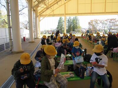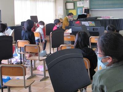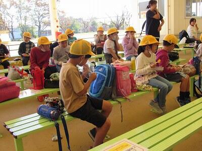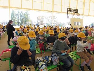 代表児童の言葉、先生からの話を聞いて、お家の方と帰ります。