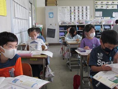 となりの2年生だって、連絡帳を書き終え、配布物をテキパキ整理だね。
