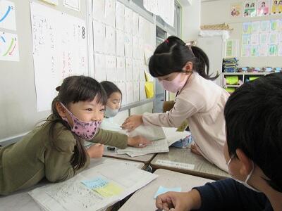 「こうやればできそうだよ。」と、友達と学び合います。