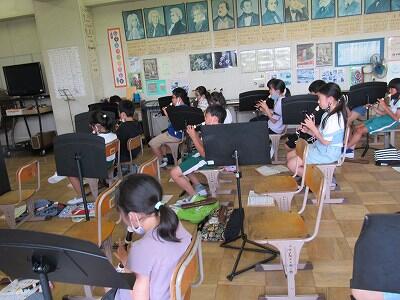 5年生が、様々な楽器を使って、合奏に挑戦中です。