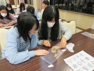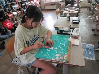 そこへ、各自がもってきた道具を使って、模様をつけて作品を仕上げていきました。