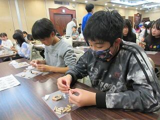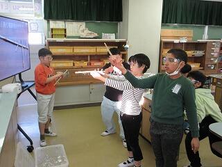 ★科学・工作クラブは、わりばし鉄砲をつくり的うちをして楽しんでいました。