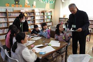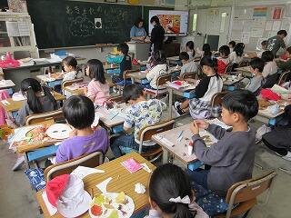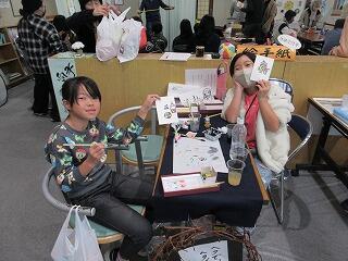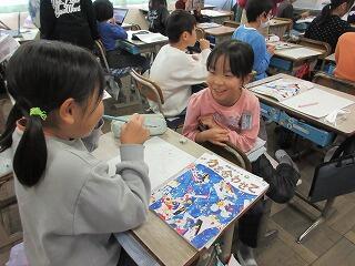 ★絵手紙体験を頑張っている幸松っ子にも出会いました。とても素敵な絵を描くことができていました。