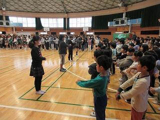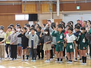★音楽委員会が下級生の前で手話の手本を見せてくれていました。