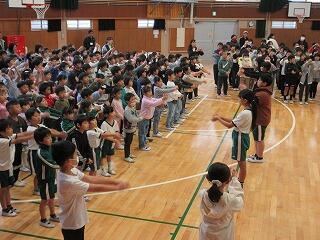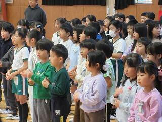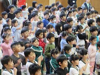 11月20日の校内音朝会で全員合唱で歌う「世界がひとつになるまで」の練習をしました。