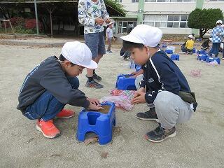 小さな芸術家たちは、思い思いに粘土を切ったりひねったりして形を作り上げていました。