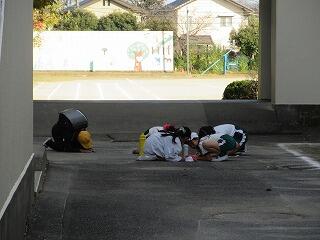 先生が近くにいない時、どんな行動をとればいいのか、子どもには予告なしの訓練です。