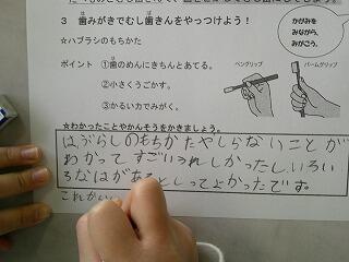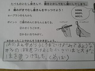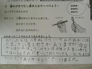 「歯みがきで むし歯をよぼうしよう」という内容で歯磨きの大切さを学びました。