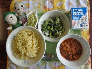 春日部市ではトマトとなすがたくさん栽培されています。このトマトとなすを使ったパスタです。ボロネーゼとは、刻んだ野菜をオリーブオイルで炒め、ひき肉と合わせたソースで、イタリアやフランスの料理です。