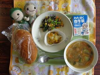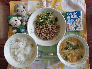 ゴーヤは「にがうり」ともいわれる夏の野菜です。苦みがあって苦手な人が多いのではないでしょうか。給食のゴーヤチャンプル-は、苦みがやわらぐような工夫をして作りました。