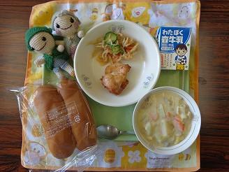 待ちに待った給食が始まりました!「ビビンバ&ワンタンスープ」は人気のメニューです。残菜はほとんどありませんでした。これからもいろいろな給食のメニューが登場します。