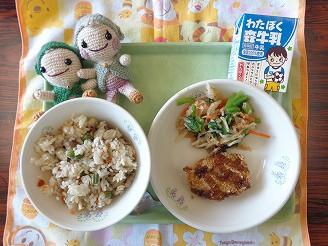2学期の家庭科の授業で、バランスのよい献立について学習し、給食の献立を考えました。たくさんの食べ物を取り入れたタイトル通り栄養たっぷりの献立を考えてくれました。ツナと豆腐のから揚げは、ふわっとしていて食べやすかったです。