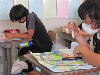 ◆2年生は、1学期の学びを振り返り、学びの足跡ファイルを作っているよ。