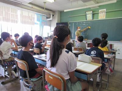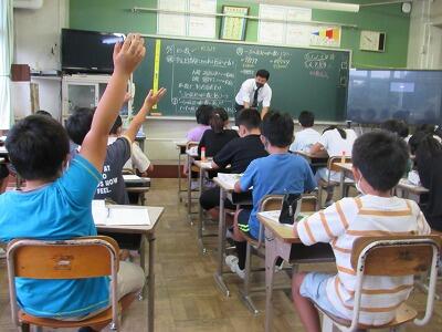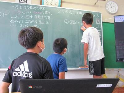 ◆4年生は、先生と元気よく算数を楽しんでいるよ。